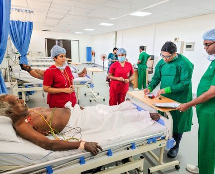 Dr Vinodhan performing cardiac procedure at Sanjeevani Cardiac catheter center